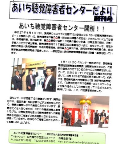 当センターの機関誌”あいち聴覚障害者センターだより”(隔月発行)では、聴覚障害者・盲ろう者に関する様々な情報を発信しています。
